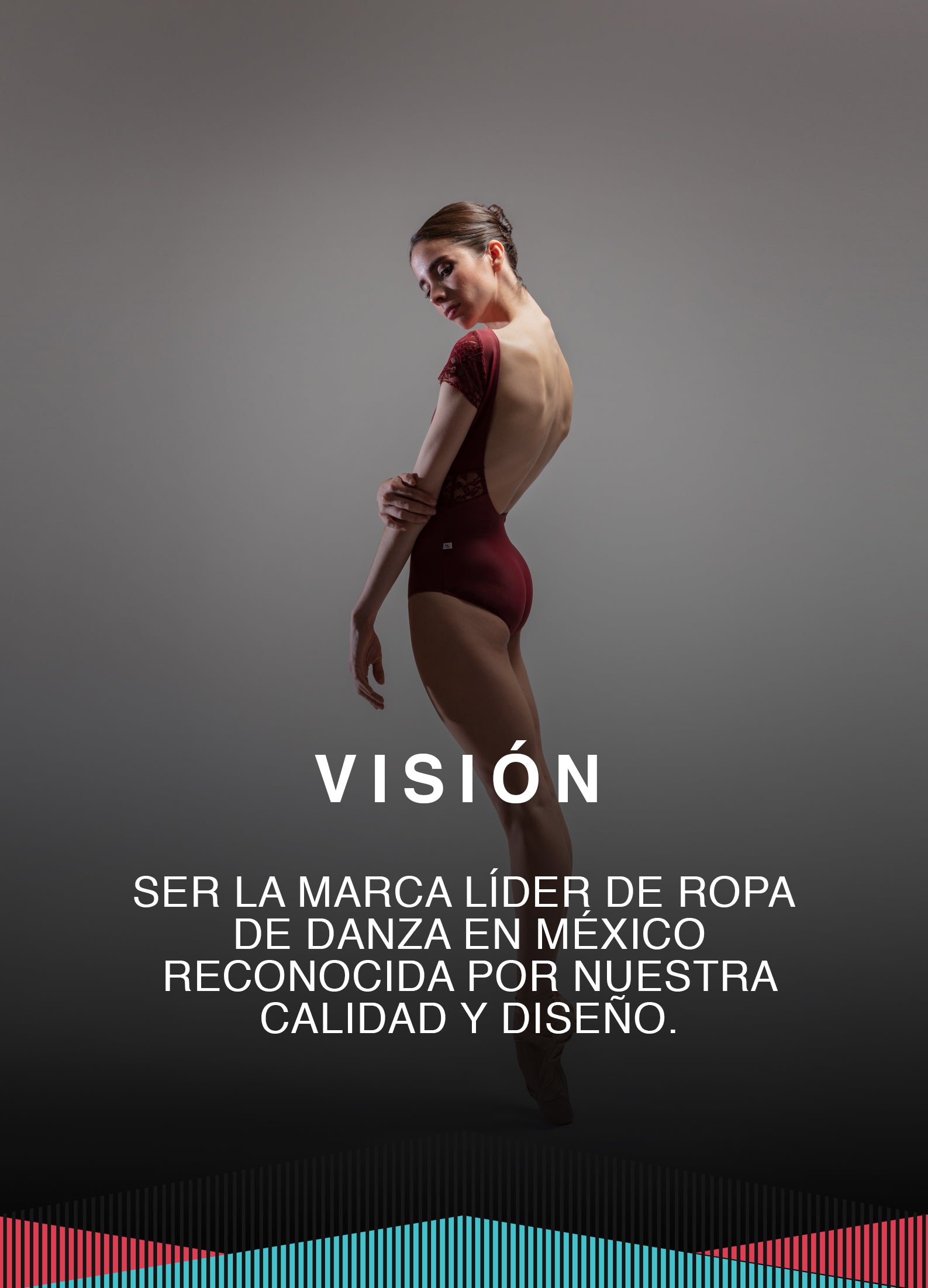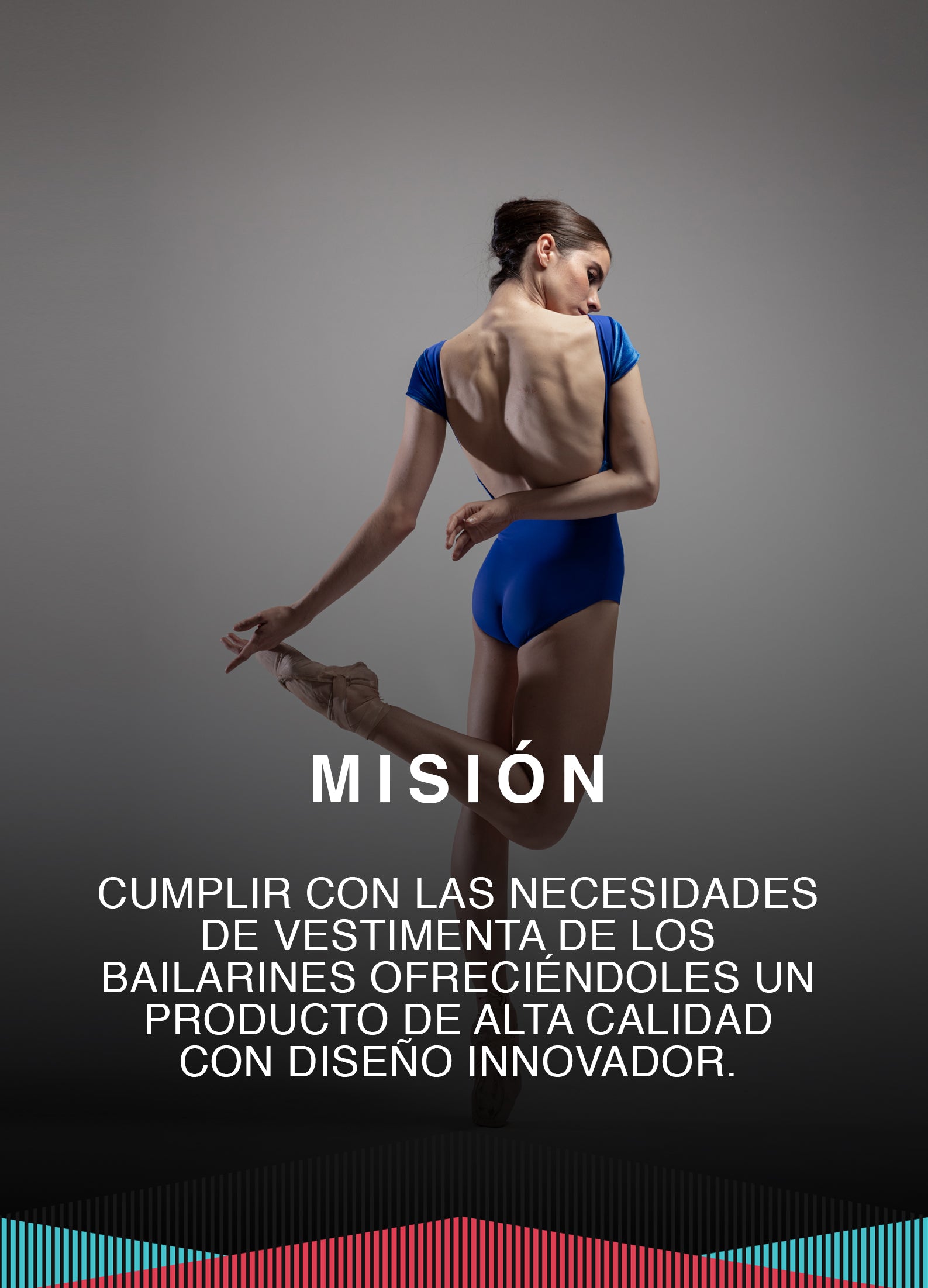Comprometida con la excelencia en diseño para el alto nivel de danza en México, comenzó con la investigación y estudio de prendas funcionales y elegantes para el bailarín en busca de innovación.